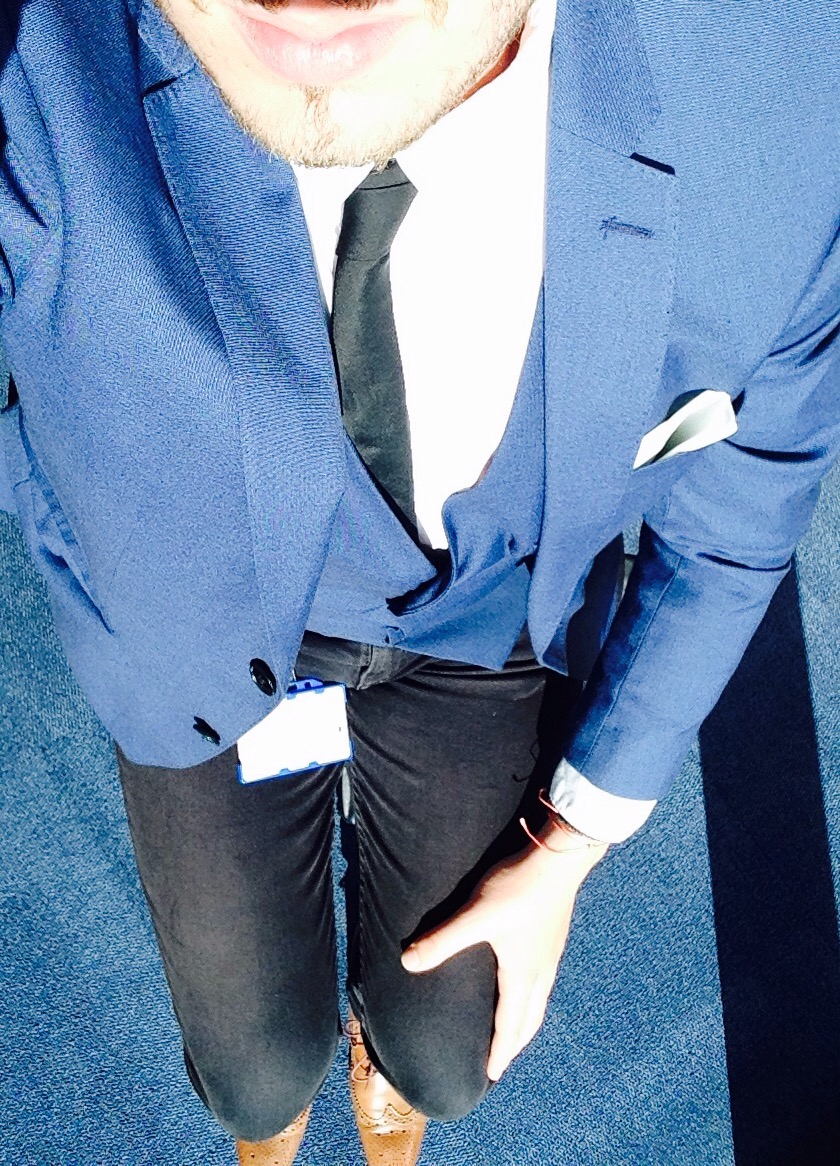 After plenty of trying on and twinning up, I settled on a 3 piece, mid-blue, Skinny fit suit that more than lived up to everything i wanted. The suit was £110…but for the Trousers, Blazer and Waistcoat. Luckily, the plainer design and easy to match colour makes each item, stand alone. Even Better.