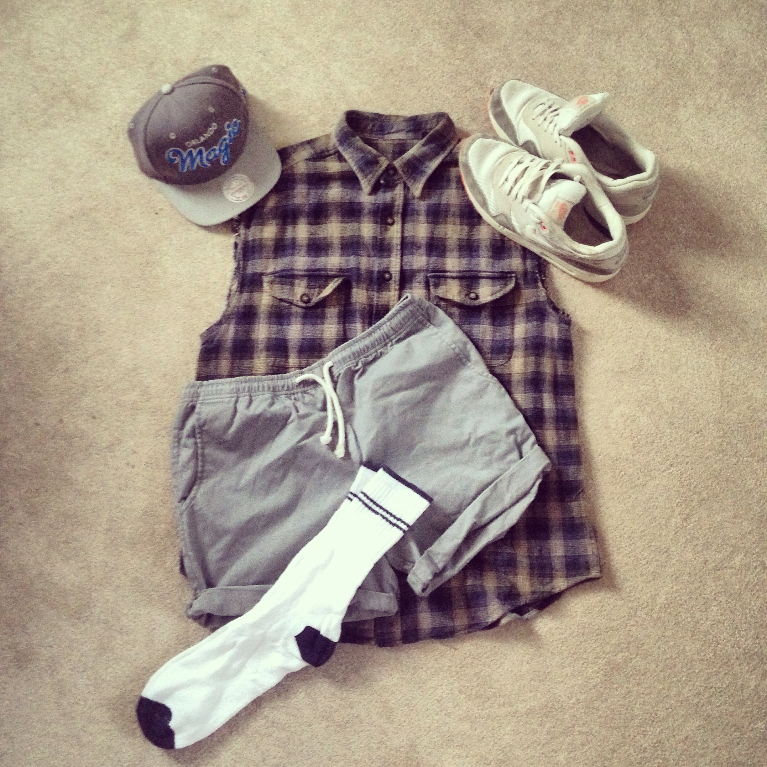 Flannel Shorts – H&M // Cream Vest Top – Topman // Shirt – A-Hand-Me-Down // Nike Air Max – Foot Asylum // SnapBack – Size?